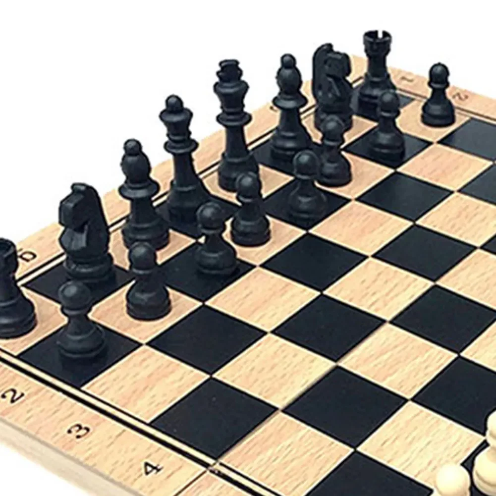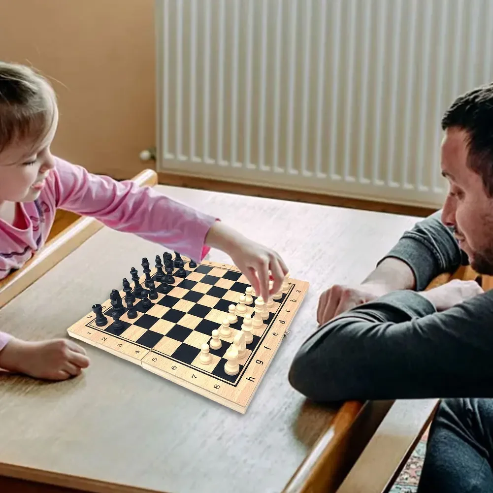 3 in 1 Chess Backgammon Checkers Set Wooden Portable Chess Board Entertainment Puzzle Game Toys for Children Adult Beginner